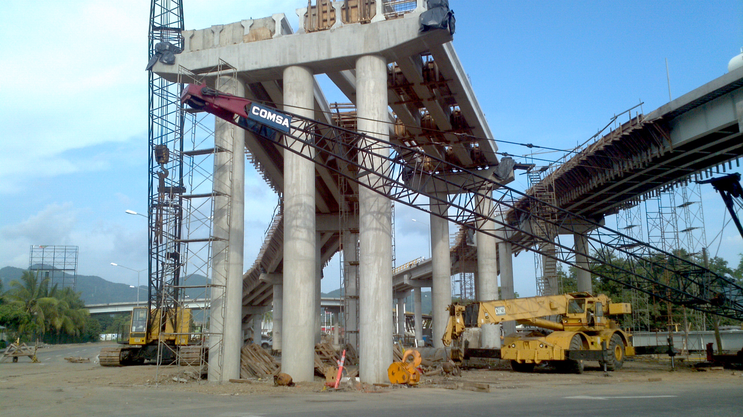 Obra realizada para la optimización del flujo vehicular de ingreso al puerto y hacia la zona hotelera. Realizado en Manzanillo, Colima. Una de las obras compensatorias más importantes que realiza La Administración Portuaria Integral de Manzanillo en la actualidad, es la del Distribuidor Vial, la cual consta de cruces a desnivel por medio de puentes vehiculares, los cuales habilitan una vialidad de acceso y una vía férrea a la Zona Norte del Recinto Portuario, estos permitirán la comunicación de esta nueva zona de desarrollo del puerto sin interferir con el tránsito local. Se trabajó en conjunto con la empresa VPR (INGENIERÍA Y CONSULTORIA ESPECIALIZADA S.A. DE C.V.) para el monitoreo de terracerías, concretos, y emulsiones asfálticas)
